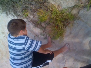 (sorry for the weak stomachs) There was so much blood and blood clots kept coming out of his nose! Big nasty things. He kept saying, “Am I dying? Am I losing all of my blood?” Poor thing. He and Neal went back to the house to take care of the issue and Ryan and I stayed and put our feet in the FREEZING COLD WATER.