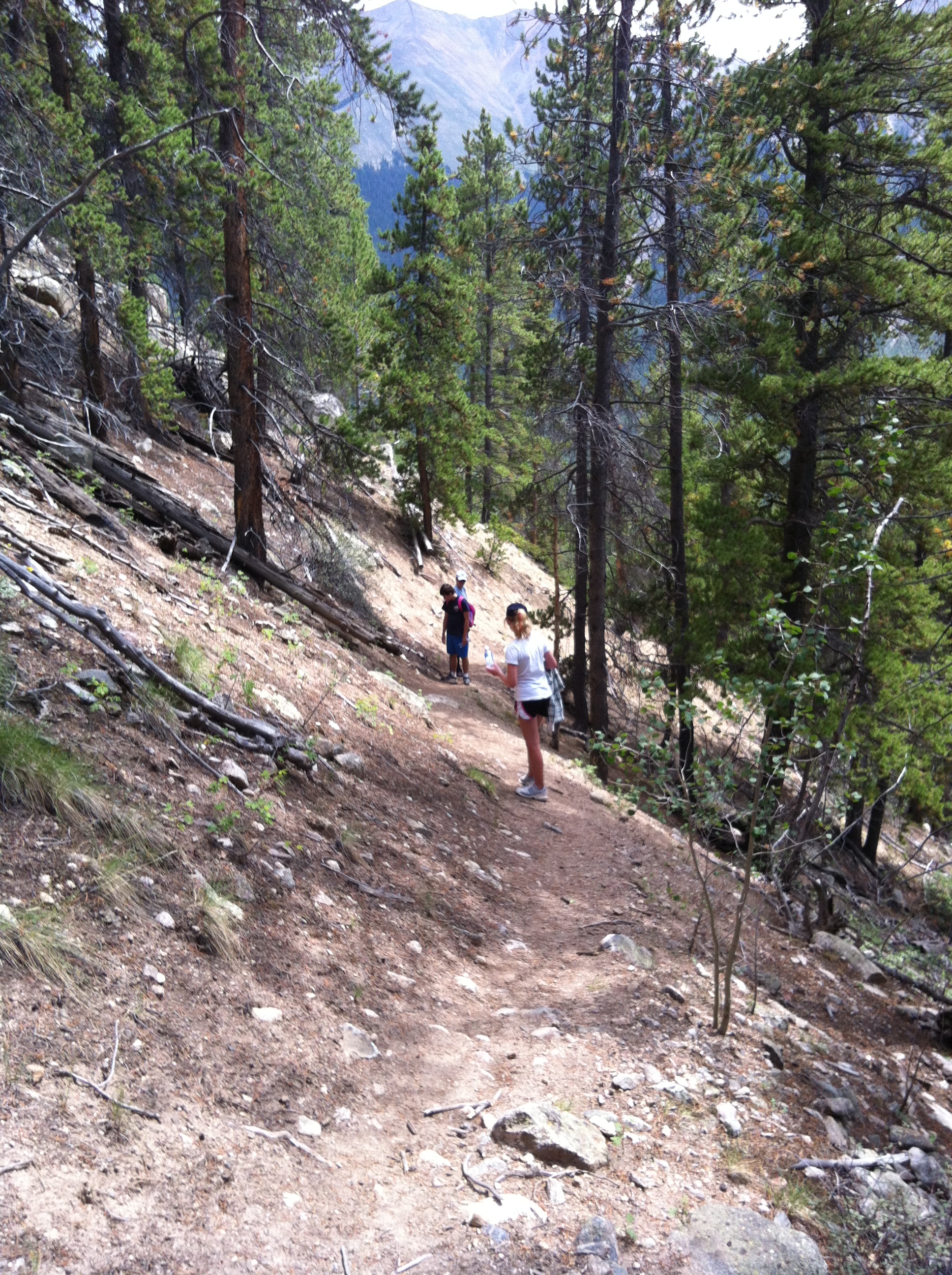 The greatest moment of the trip for me was when Brooke and I took our oldest kids hiking. It had been 8 years since we’d seen one another and our children and at that time we both were commiserating on the hyperactivity and impulsiveness both of our kids displayed. The validation we received at the time was that we were not alone and we were not imagining the behavior that had us at our wits end. Now our kids are teenagers, well-mannered, well-behaved positive influences on society. We took them on a hike up Mt. Elbert (a 14,000+ elevation) and both Brooke and I were apprehensive that either child would go with us let alone make it the entire hike. About 10 minutes into the hike Ryan decided he was done and he wanted to go back to the cabin. Dejected but not surprised I let him go. Paige, Brooke’s daughter, hung in there though and we continue our trek up the steep incline. After a few stops to catch our breath we had gone about 45 minutes when Brooke said she saw someone coming up the trail.
