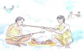 “Next I went to visit Heaven. I was surprised to see the same setting I had witnessed in Hell – row after row of long tables laden with food. But in contrast to Hell, the people here in Heaven were sitting contentedly talking with each other, obviously sated from their sumptuous meal.